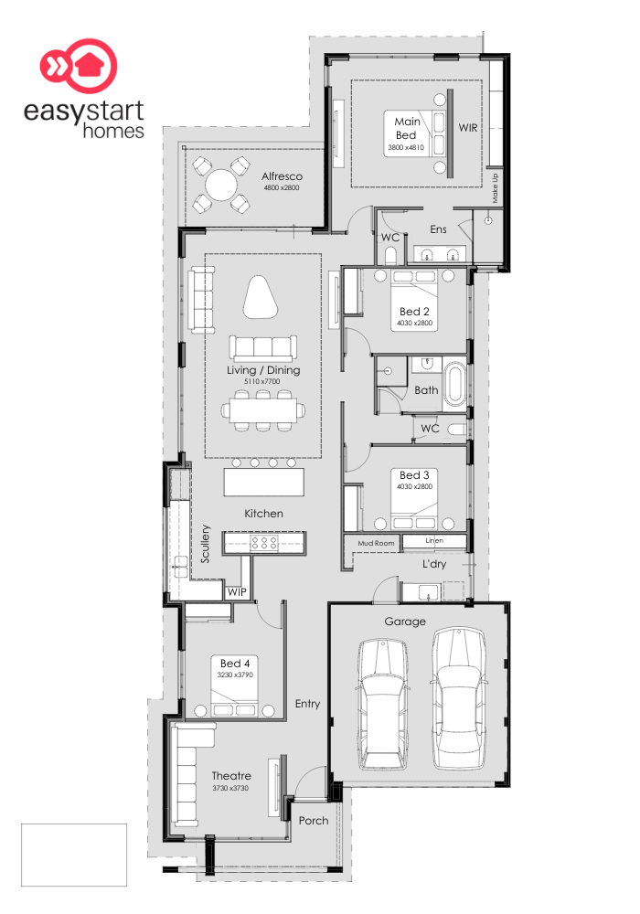 The master suite offers a private retreat with a spacious bedroom, walk-in robe and ensuite, while the additional bedrooms provide plenty of room for family, guests or a home office. With a separate theatre room, mud room and double garage, The Brookvale is designed to make real life easy — and show you just how achievable your first home can be.