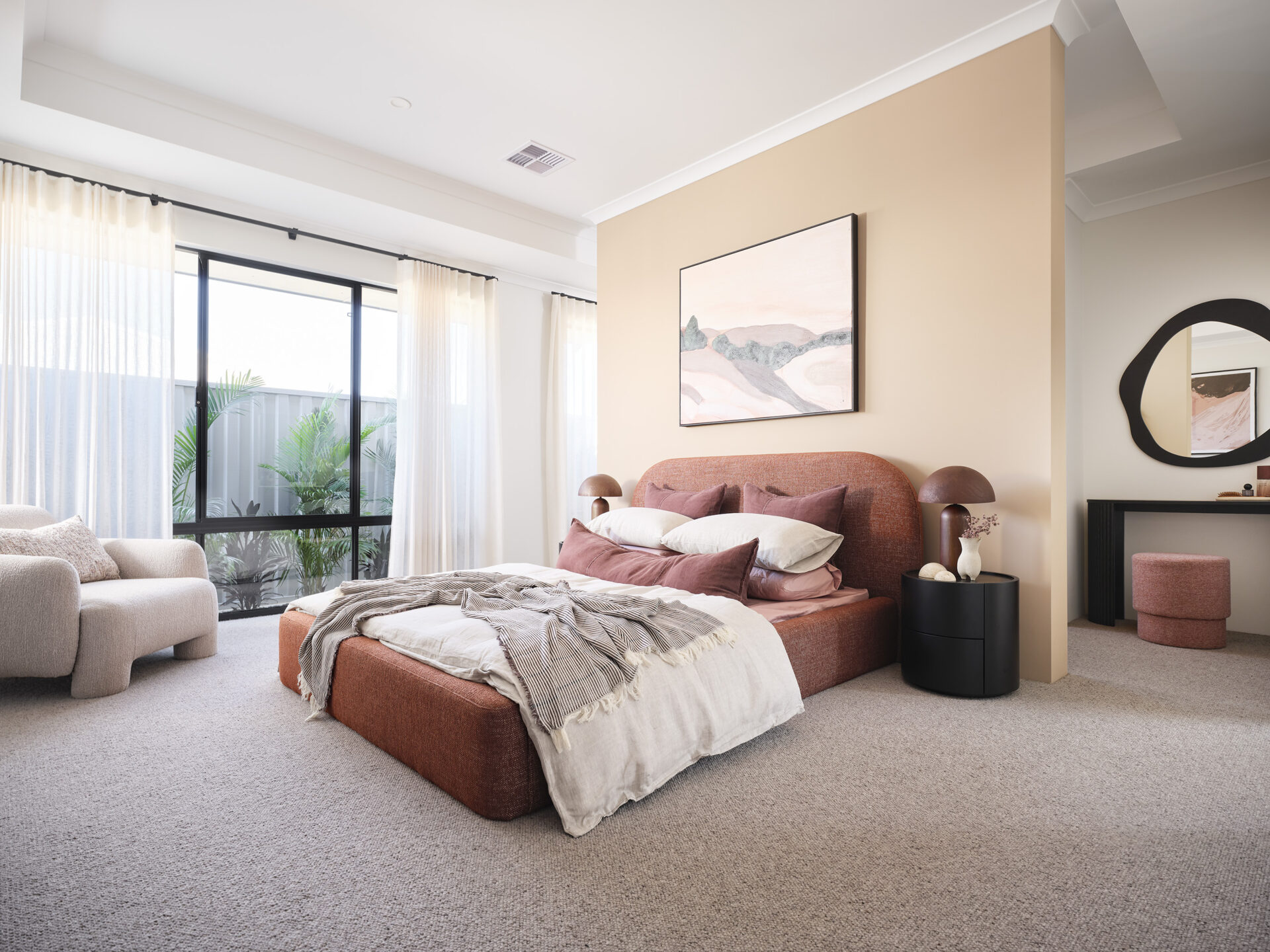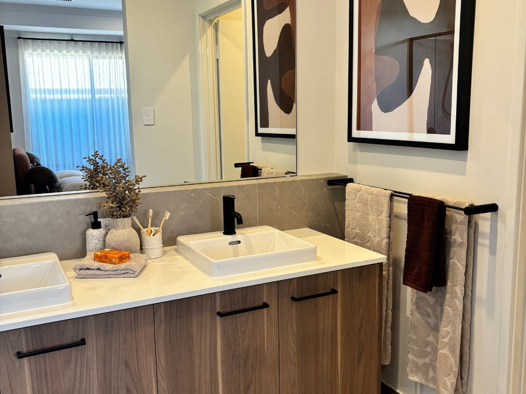 Step inside The Brookvale and discover a home that feels warm, relaxed and effortlessly liveable. Styled in an Earthy Natural concept, this design blends grounded colours, natural textures and a calming finish that instantly feels like home. With 27c ceilings throughout and recessed ceilings in both the living/dining area and master suite, the space feels light, open and welcoming from the moment you arrive.