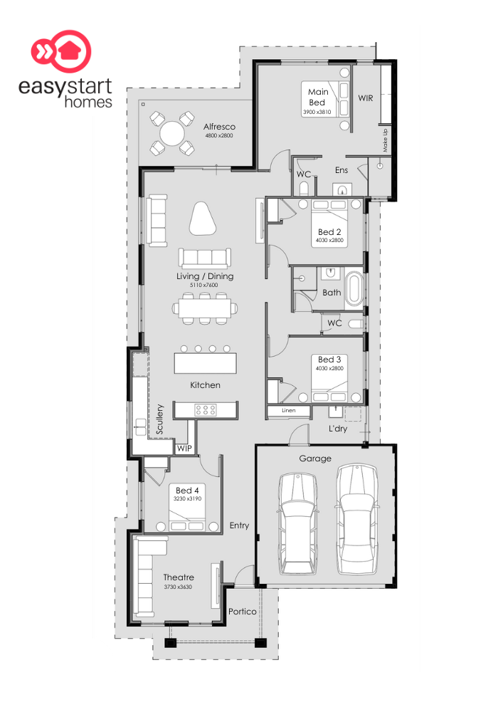 The heart of the home is the open-plan kitchen, dining and living area, designed for everyday comfort and easy entertaining. It flows seamlessly out to the alfresco, creating the perfect indoor-outdoor lifestyle WA homeowners love. The kitchen is packed with practical features, including a scullery, walk-in pantry and clever storage, so everything stays clean and clutter-free.
